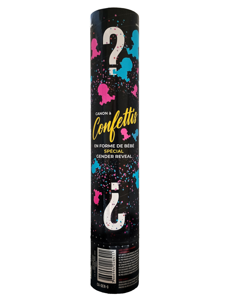 Canon à confettis bleu en forme de bébé pour révéler le sexe de votre enfant. Idéal pour une Gender Reveal inoubliable, avec une pluie de confettis qui émerveillera vos invités
